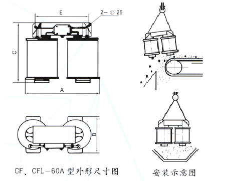 注:CF懸掛式電磁除鐵器:采用銅芯繞組;