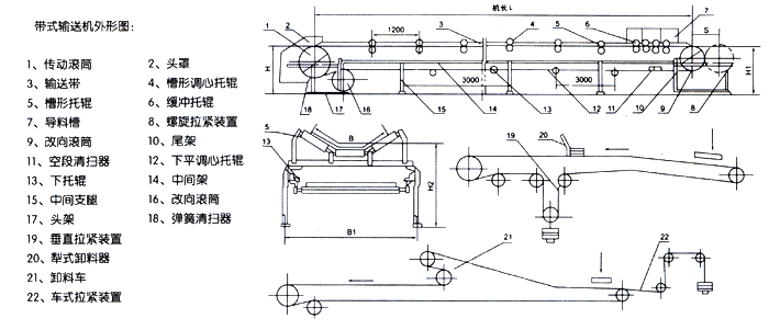 托輥是用無縫鋼管制成,類型有:槽形、平行,調(diào)心,緩沖四種,拉緊裝置:螺旋式拉緊裝置適用于長度較短(小于100m),行程有500m、800m、100mm三種;垂直重錘拉緊裝置,可隨著張力變化靠重力自動補償輸送帶的伸長;重錘車式拉緊裝置適于距離較長,功率較大的輸送機,其拉緊行程有2,3,4m三檔,固定絞車拉緊裝置用于長行程大拉緊力(30-150KN),長距離,大運量的帶式輸送機,拉緊行程可達16m。